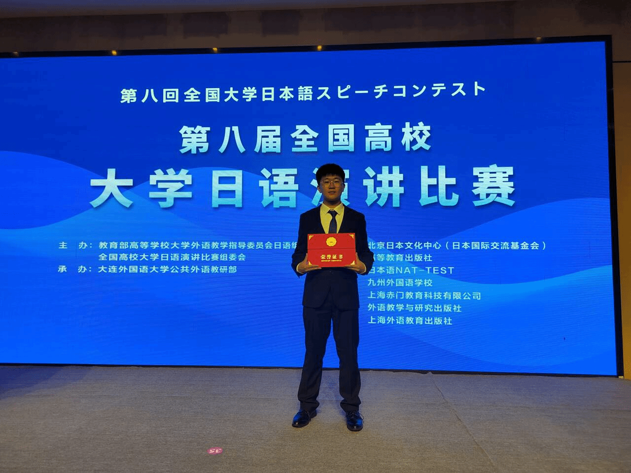 近日,在第八届全国高校大学日语演讲比赛全国总决赛中,我校学子再创佳绩。2022级临床医学专业厉海亮同学、仁济学院2023级全科医学专业任珏余同学凭借扎实的语言功底与出色的综合素质,从众多参赛高校选手中脱颖而出,分获全国一等奖和二等奖。指导教师陆晓鸣、姜海燕、张晓敏、王慧获评“优秀指导教师”。