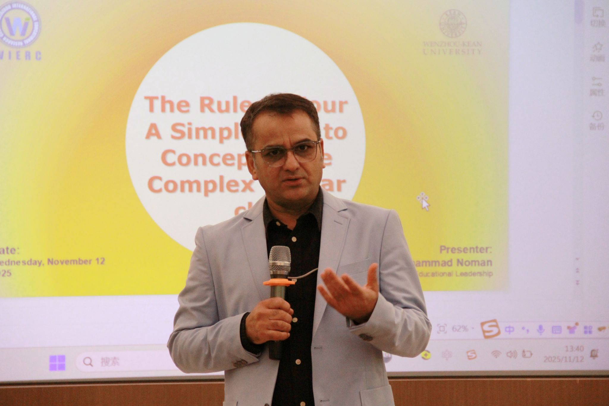 在同仁楼B104会议室举办“Voice of Research”第11期活动,邀请温州肯恩大学教育领导与管理系主任、教育领导力博导Mohammad Noman教授作题为《The Rule of Four: A Simple Way to Conceptualize Complex Research》的讲座。活动由伊莉讨论区