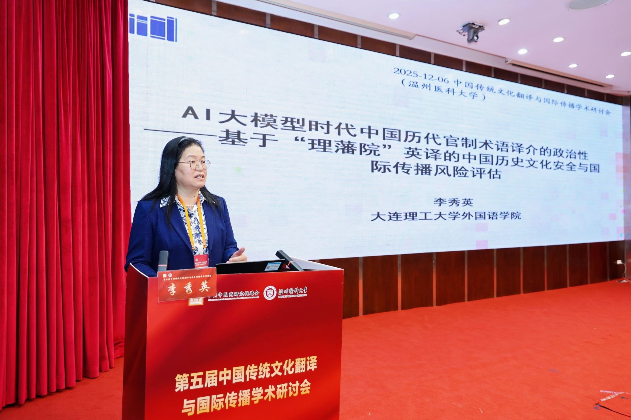大连理工大学李秀英教授以“AI大模型时代中国历代官制术语译介的政治性——基于“理藩院”英译的中国历史文化安全与国际传播风险评估”为题发言。她以 “理藩院” 英译为例评估相关文化安全与传播风险。她指出,大数据与AI大模型使术语译介进入受 “数据频率-模型推断-语境弱化”影响的新阶段,主流 AI 模型对 “理藩院” 常输出含殖民语义的译名。这类译法源于西方汉学传统与高频数据,经算法强化后易引发制度意义偏移和历史误读。为此,她呼吁建立基于中国学术共识的术语数据库,将术语治理纳入文化安全体系,构建自主安全的制度话语传播路径。《外语学刊》主编孙颖为李秀英教授主持发言并进行了精彩的总结。