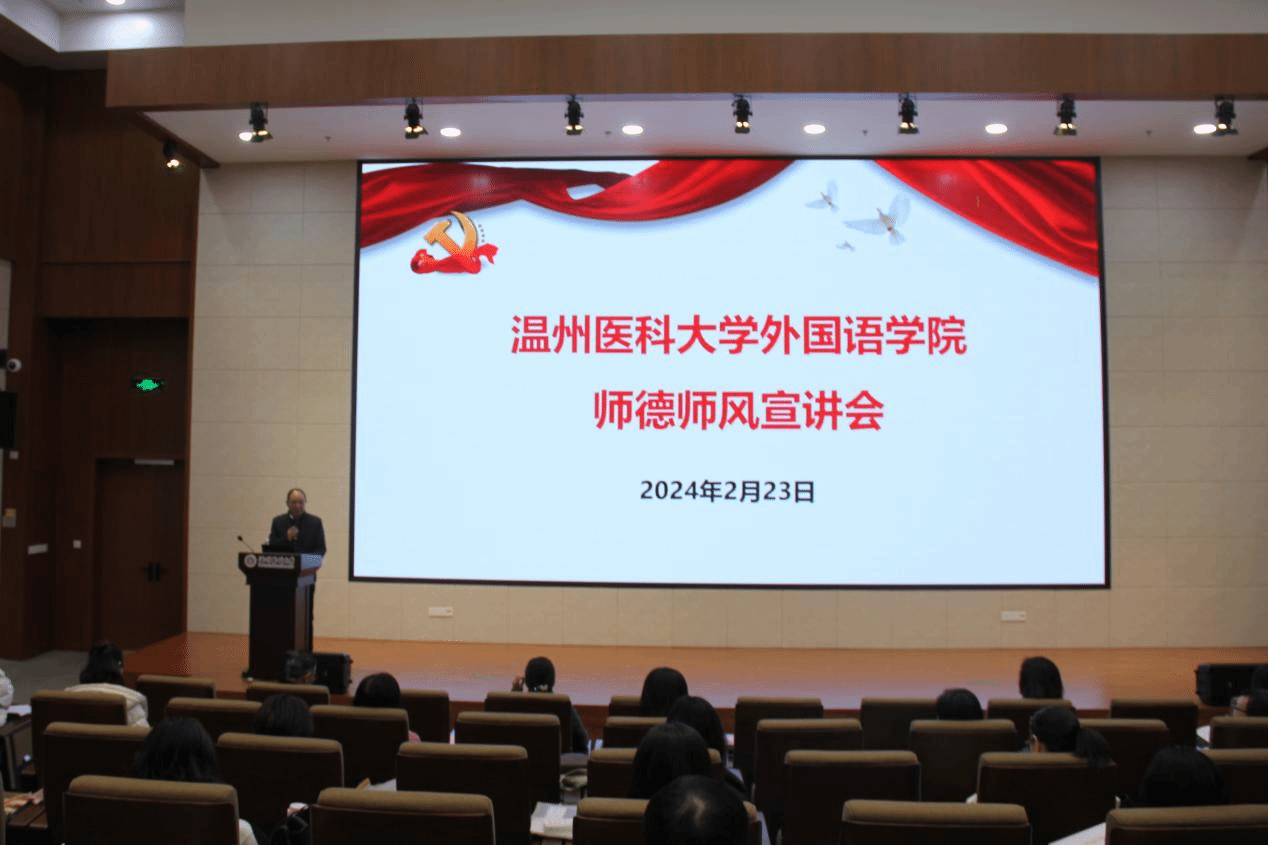 在校生物医药科研楼二楼隆重召开师德师风宣讲会。此次宣讲会得到了学校党委的高度重视,党委书记吕一军亲临现场发表重要讲话。会议由院党委书记刘洁主持,学院领导班子及全体教职工均参加了此次会议。