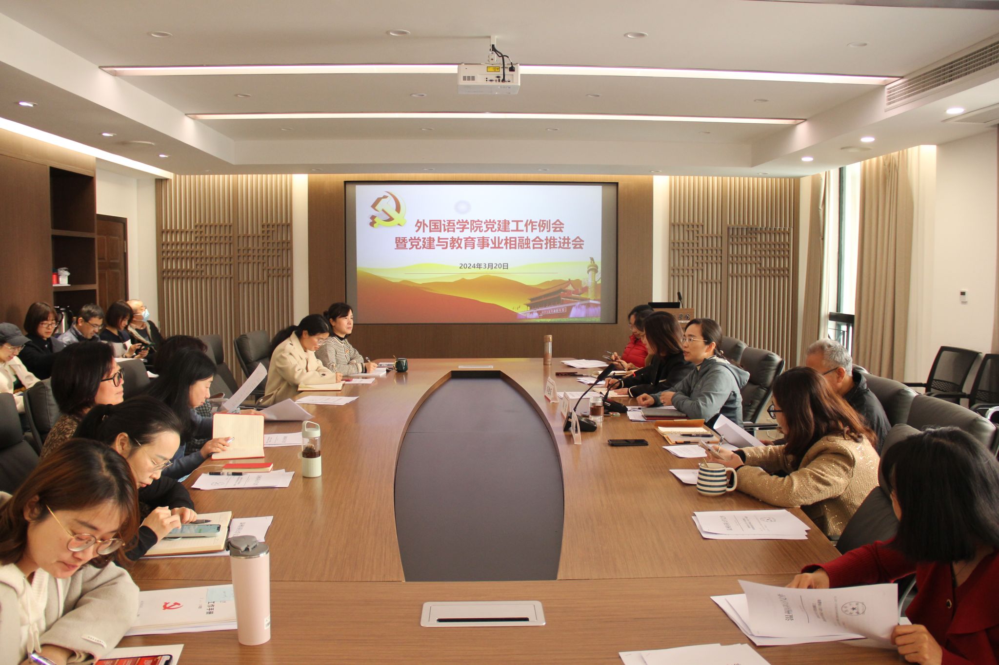 在7B104会议室召开党建工作例会暨党建与教育事业相融合推进会。学院党委书记刘洁主持会议,党委委员、组织员、各党支部书记及全体支委、全体教研管理干部参会,共同就党建工作与教育事业深度融合进行深入探讨。