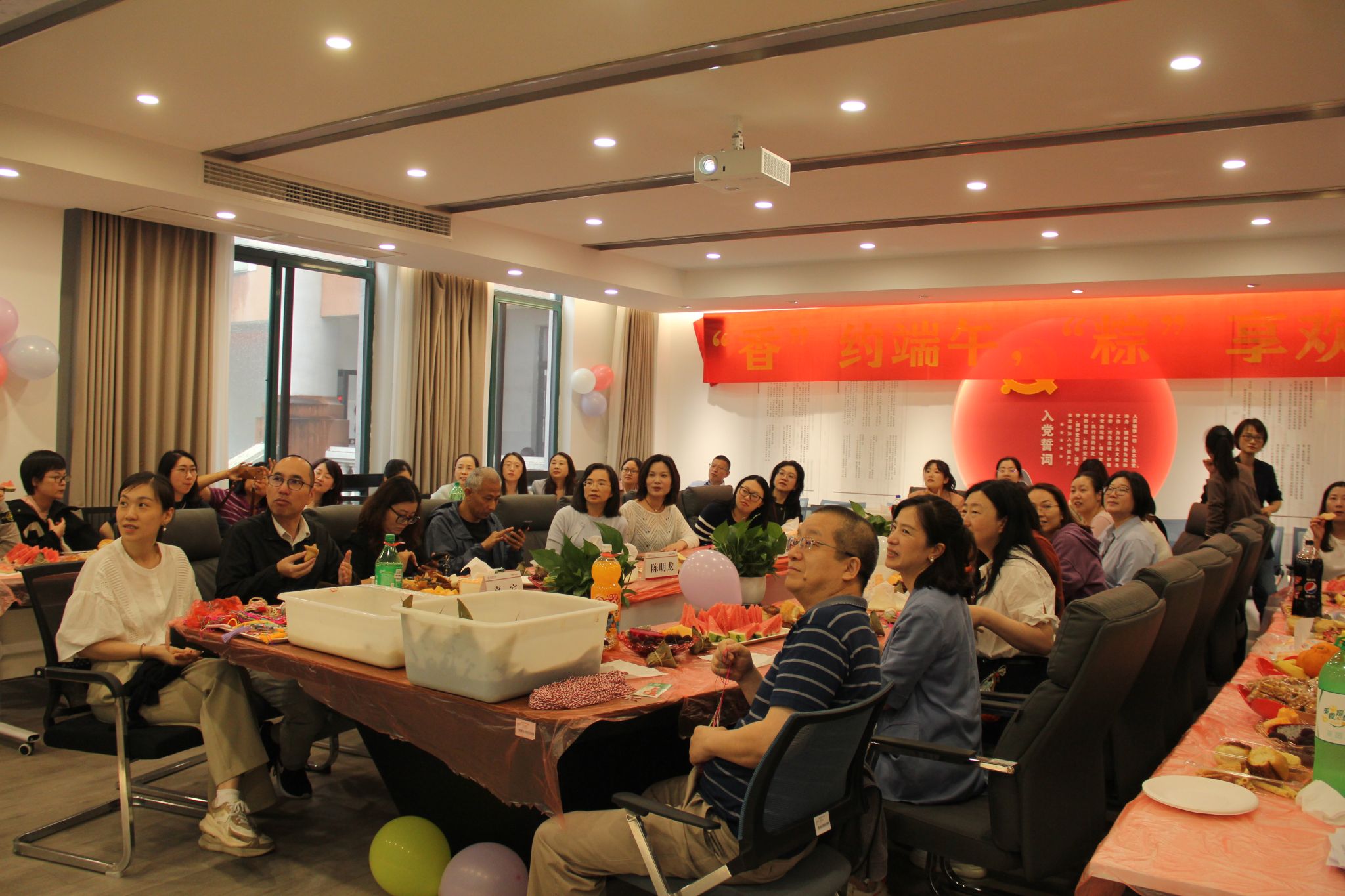 在同仁楼B104举办了以“香”约端午,“粽”享欢乐为主题的工会活动。学院教职工与外教欢聚一堂,共同体验端午文化活动。
