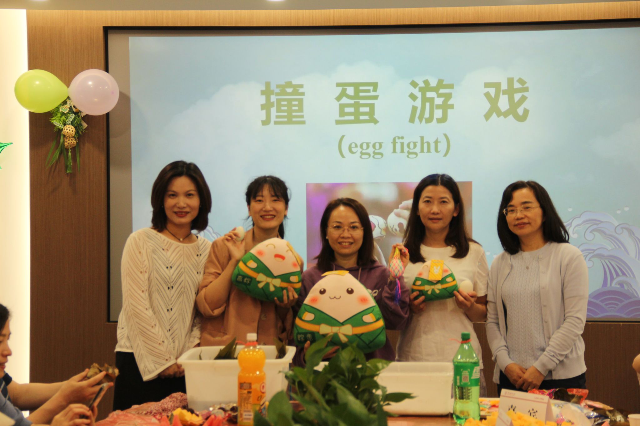 活动伊始,王艳素老师用英文为学院教职工介绍了端午节的来历,讲述了历史名人屈原的爱国故事以及端午节的习俗,并邀请英语外教Christine和日语外教UNO KOJI参与端午知识竞赛和撞蛋游戏。经过多轮比拼,夏海鸥老师、金繁繁老师和王晓敏老师荣获撞蛋比赛冠亚季军,整个活动现场欢声笑语,其乐融融。