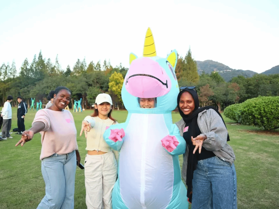 这次大合照还增添了一位奇趣“同学”——英语角吉祥物Unicorn,更是带来了同学们超多的笑容,和Unicorn一起留下了许多美好的瞬间。