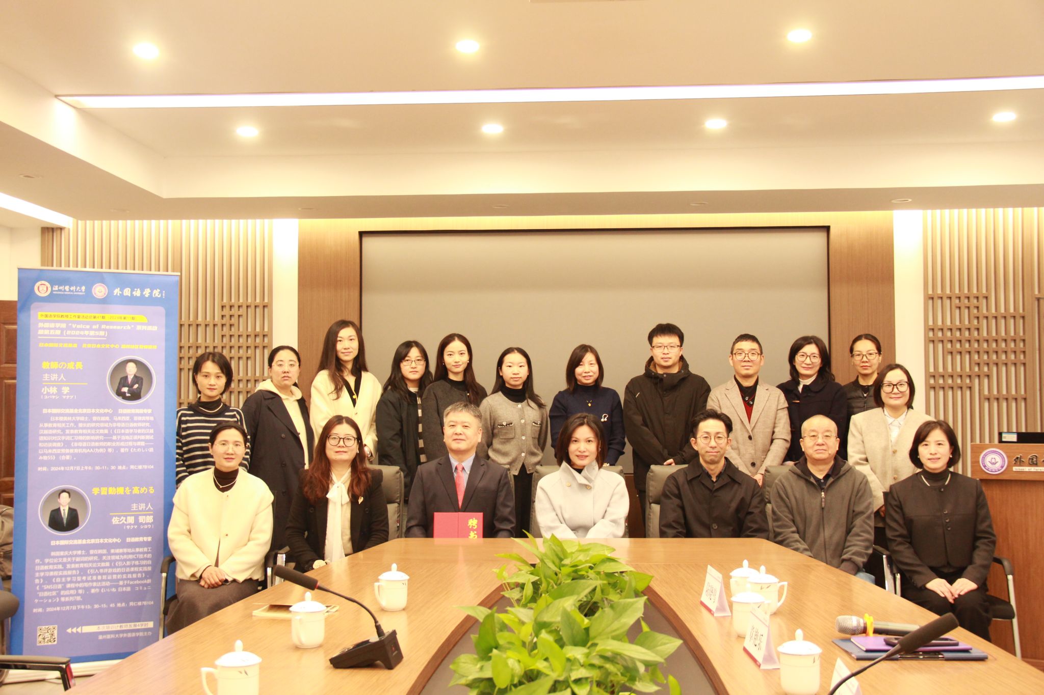 对日语专家和兄弟院校老师表示了热烈的欢迎,希望借此机会与温州大学、温州商学院等兄弟院校共同探讨外语教育的现状和挑战,分享心得,为今后的教学工作注入新的活力和灵感。