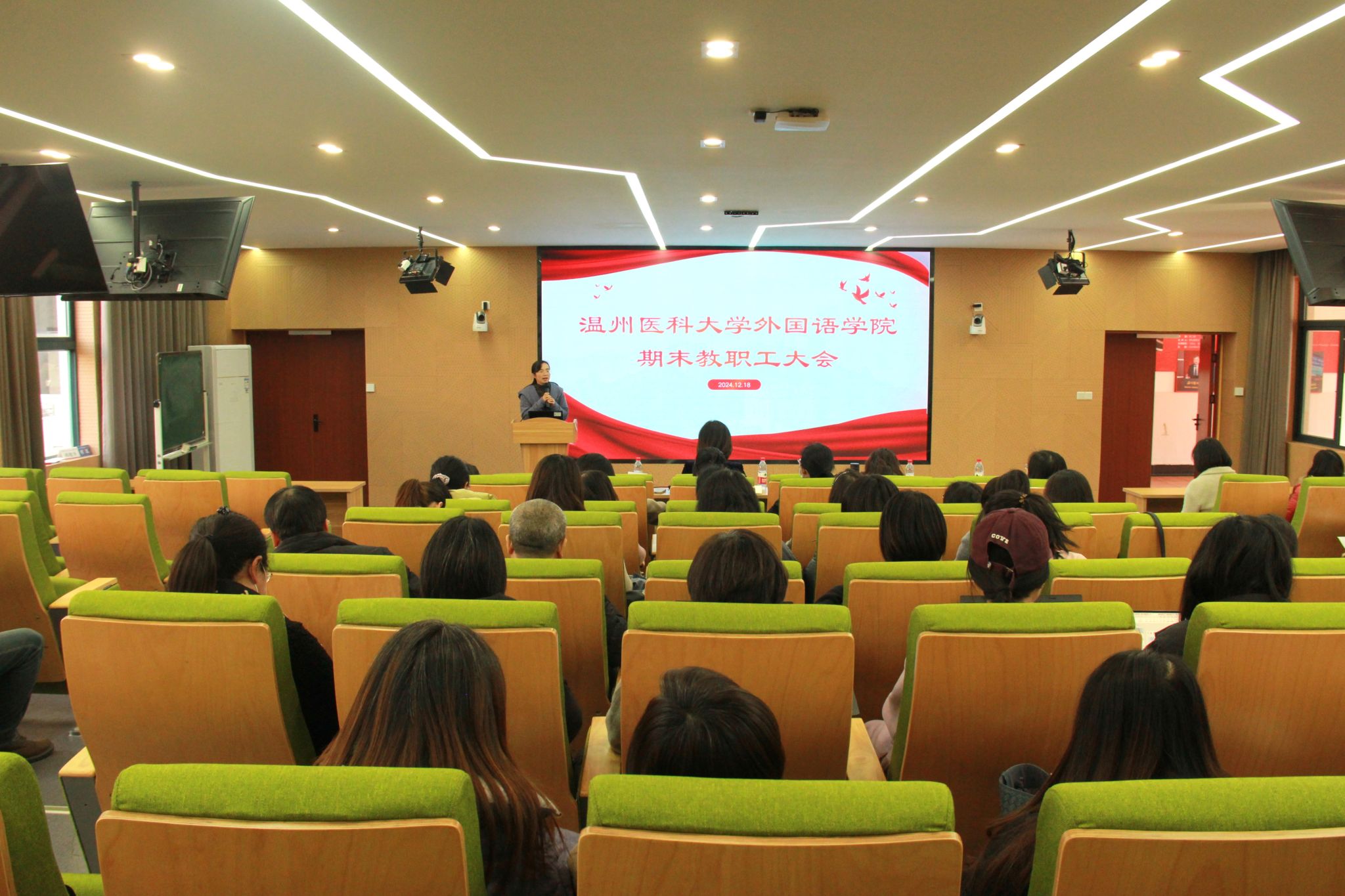 在6A107召开期末教职工大会暨中层管理干部述职会,回顾2024,展望2025。各教工党支部、系部、工会、妇联进行工作述职。会议由学院党委书记刘洁主持,副院长章艳乐出席会议,学院全体教职工参会。