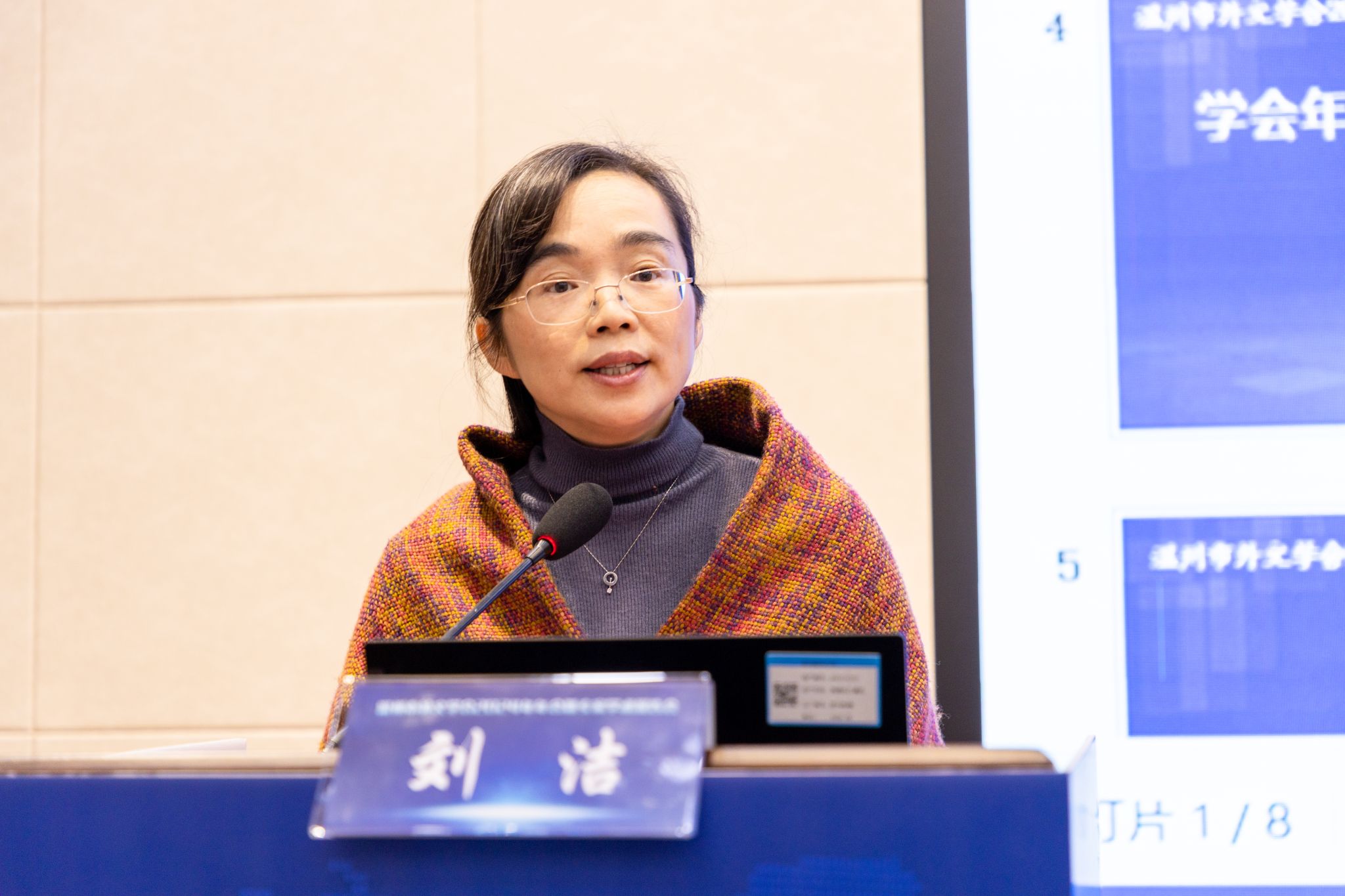 的基本情况和办学成果。她高度肯定了外文学会的工作,并希望外文学会继续推进广大温州外语学界人才的交流与合作,促进温州外语人才培养、外语学科建设,推动温州外语教育事业更上新台阶。