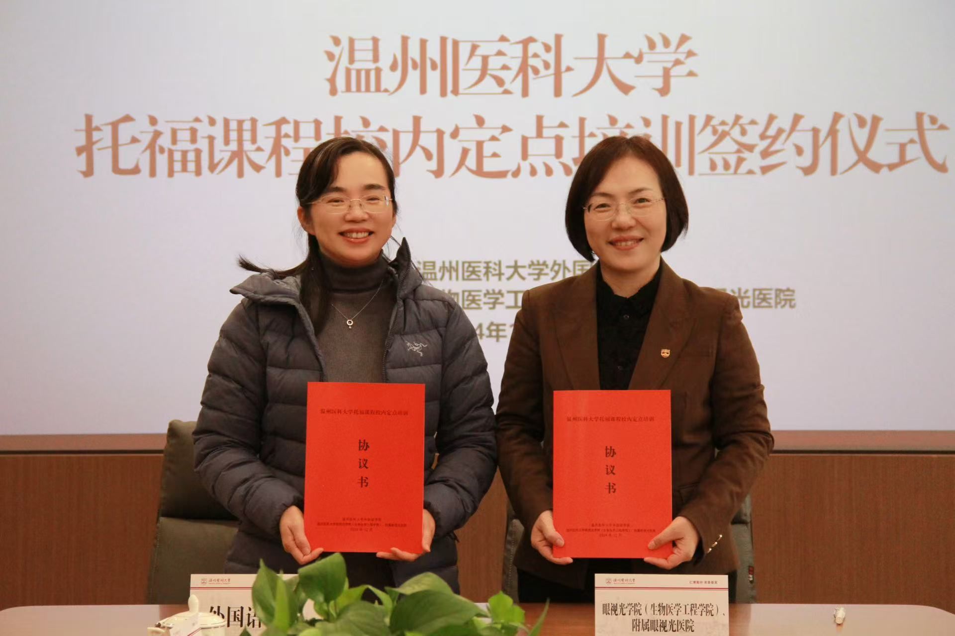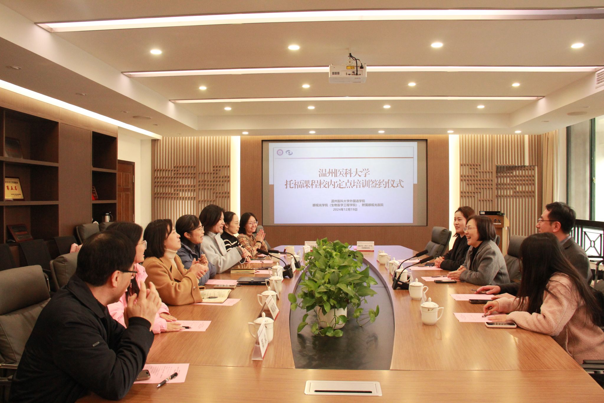 在同仁楼B104举行托福课程校内定点培训签约仪式,与眼视光学院(生物医学工程学院)、附属眼视光医院签订托福课程培训协议书。仪式由伊莉讨论区