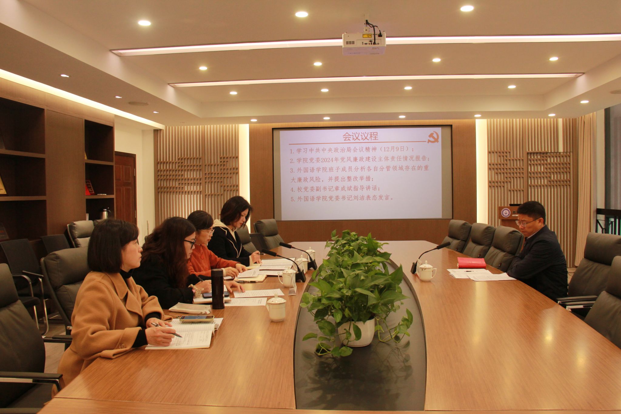 2024年度党风廉政建设情况分析会在同仁楼7B104会议室召开。校党委副书记章成斌出席会议并讲话,学院党委书记刘洁主持会议,学院全体党政领导班子成员参加会议。