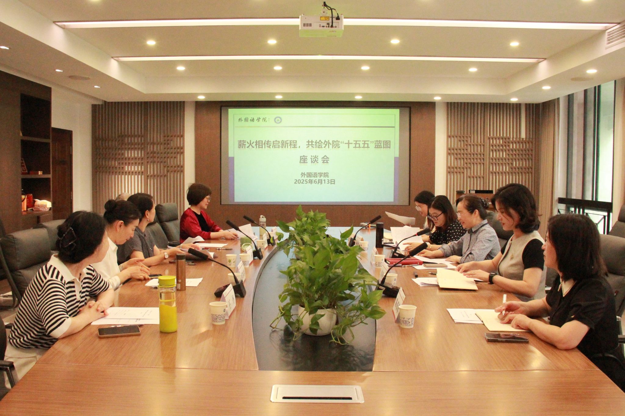 在7B104会议室召开 “薪火相传启新程,共绘外院‘十五五’蓝图” 座谈会。学院原任党委书记、院长卢易教授,学院组织员、原任党总支书记陈明龙副教授,学院原任英语系主任陈冰冰教授,以及李莹莹教授、王丹副教授等受邀出席。会议由学院党委书记刘洁主持,全体领导班子成员、办公室主任及副主任共同参会,齐聚一堂共商学院发展大计。